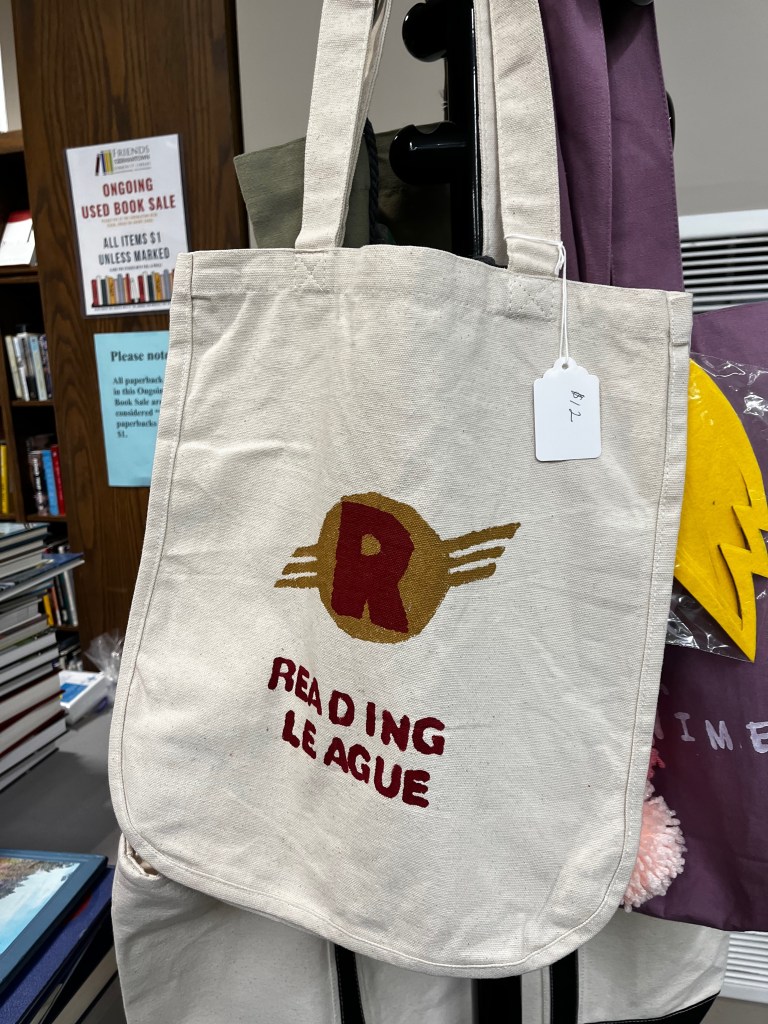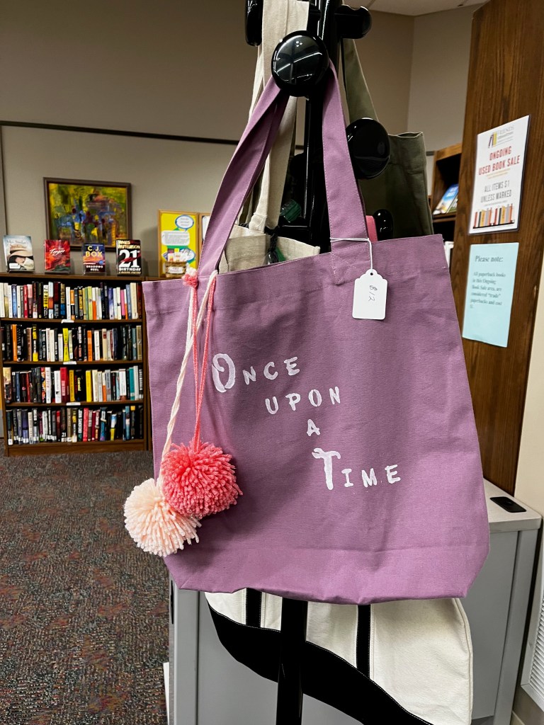 The Friends now have decorated book bags for sale, located next to the ongoing sale corner. The bags vary in price, according to the style. They make great gifts, too!